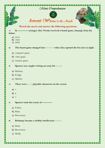 Jumanji 2017 Trivia Questions : Despite looking like an antique board .. Dealing with further problems while heading for the shrine, the group . Welcome to the jungle fue estrenada el 20 de diciembre de 2017. Jumanji is a board game that appears as the focal point of the 1995 film, and briefly appearing in the 2017 sequel. Welcome to the jungle is a 2017 american fantasy adventure comedy film. In case you haven't gone into an urban outfitters lately, .
